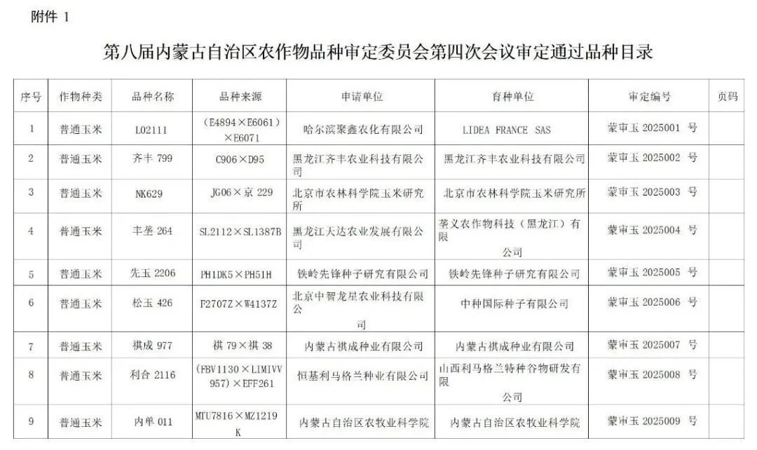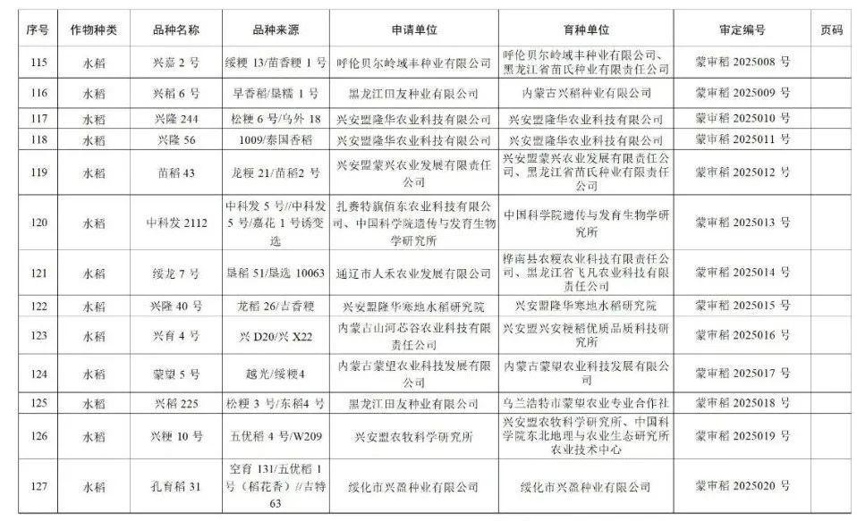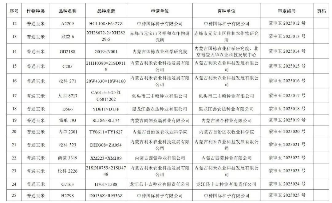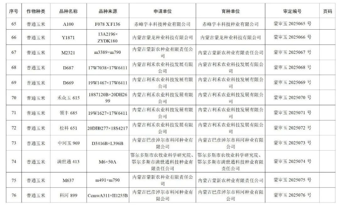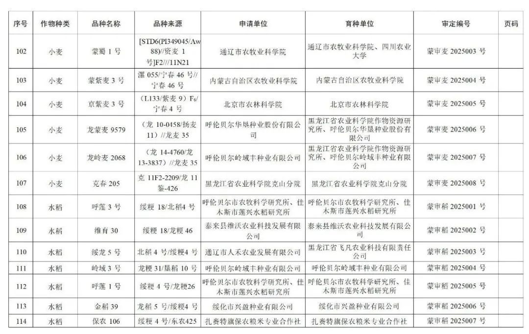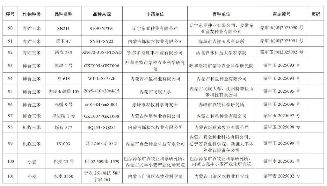 内蒙古自治区农牧厅关于2025年主要农作物品种审定结果的公告