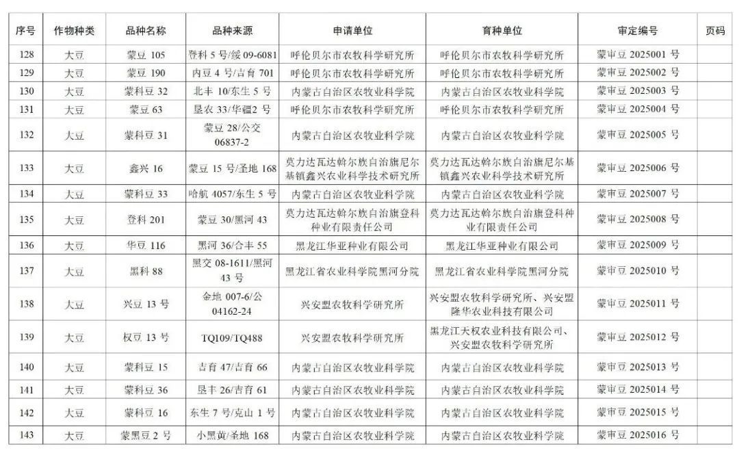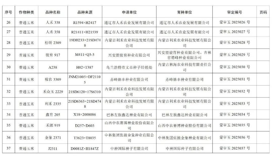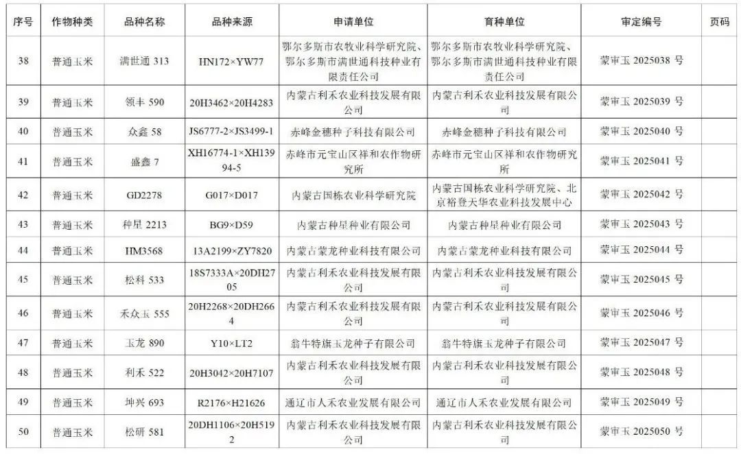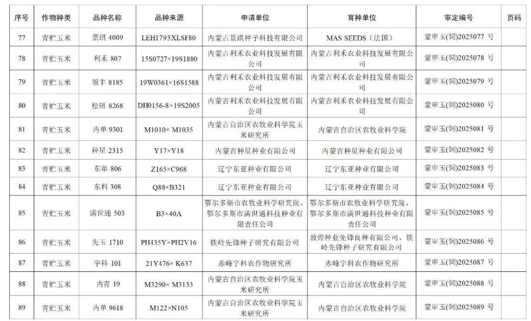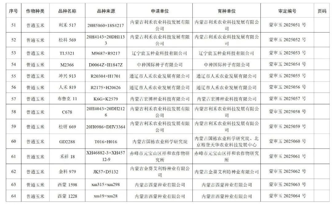 内蒙古自治区农牧厅关于2025年主要农作物品种审定结果的公告